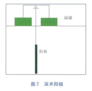 當(dāng)?shù)乇砜臻g小,不能采用分布式陽極或地表土壤電阻率太高時,經(jīng)常采用深井陽極(見圖2)。深井陽極的優(yōu)點:占地面積小;對其他保護結(jié)構(gòu)的影響?。魂枠O接地電阻??;遭破壞的可能??;對地表保護結(jié)構(gòu)或井套管的保護電流分布均勻;陽極接地電阻受季節(jié)變化影響小。