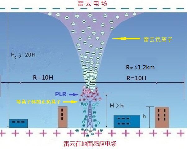(2)PLR 抗雷保護(hù)半徑 R:(10)H(H 為 PLR 針端對(duì)保護(hù)面的高差);